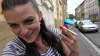 Na druhé straně chodí Veronika s Víťou po ulici a ukazuje mu píču. Hustý, ta krasotinka se toho fakt nebojí.
